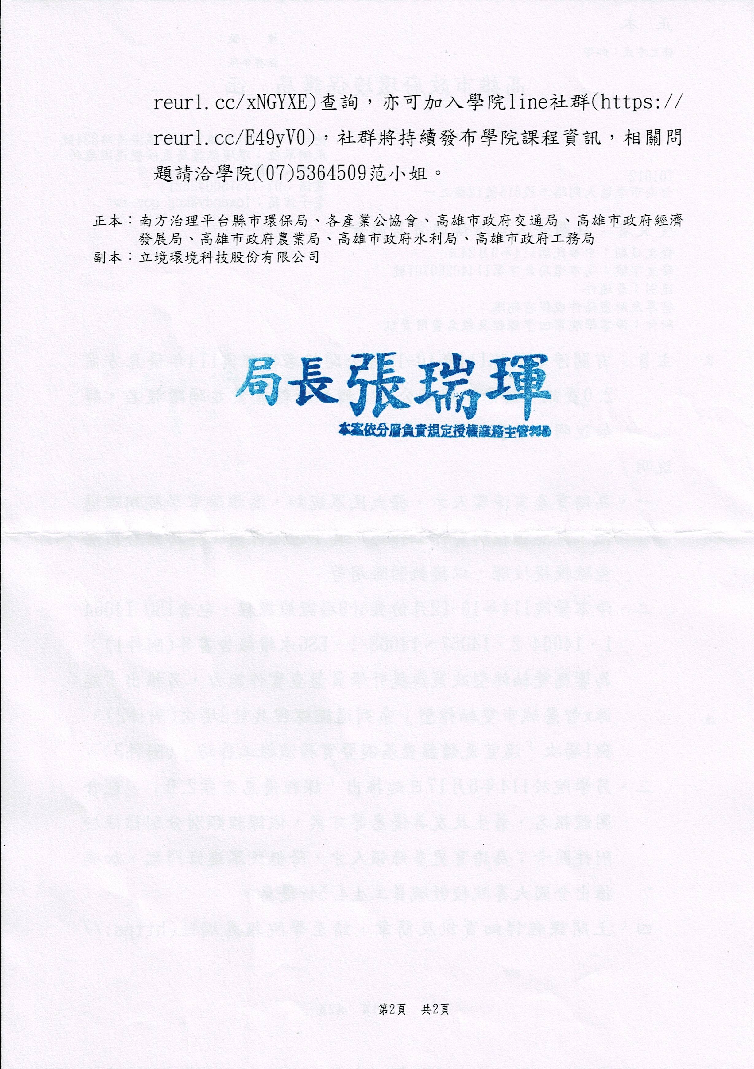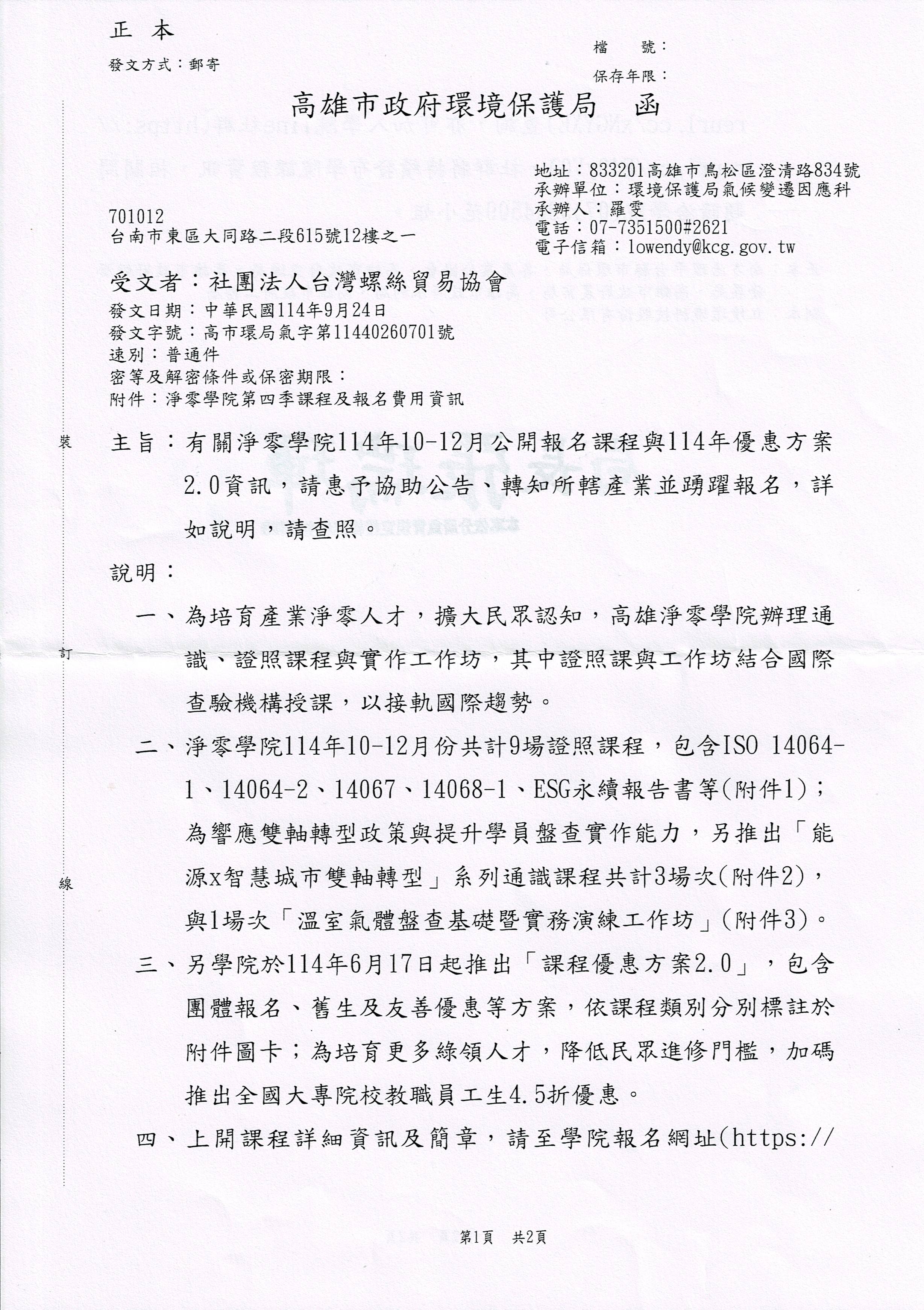 【TFTA轉發通知】:高雄市政府環境保護局-辦理通識、證照課程與實作工作坊(請參閱附檔)